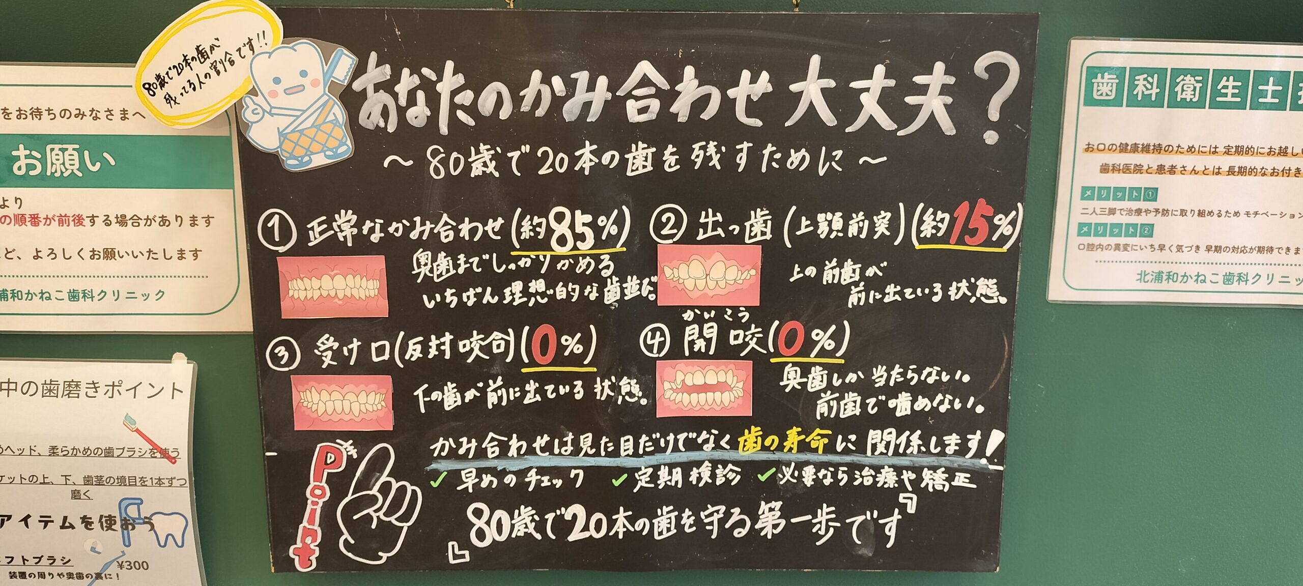 先日当院でおこなわれた院内勉強会で矯正治療に関する勉強もおこない、そこでは8020運動と噛み合わせの関係についてのお話がありましたので少しだけご紹介します!