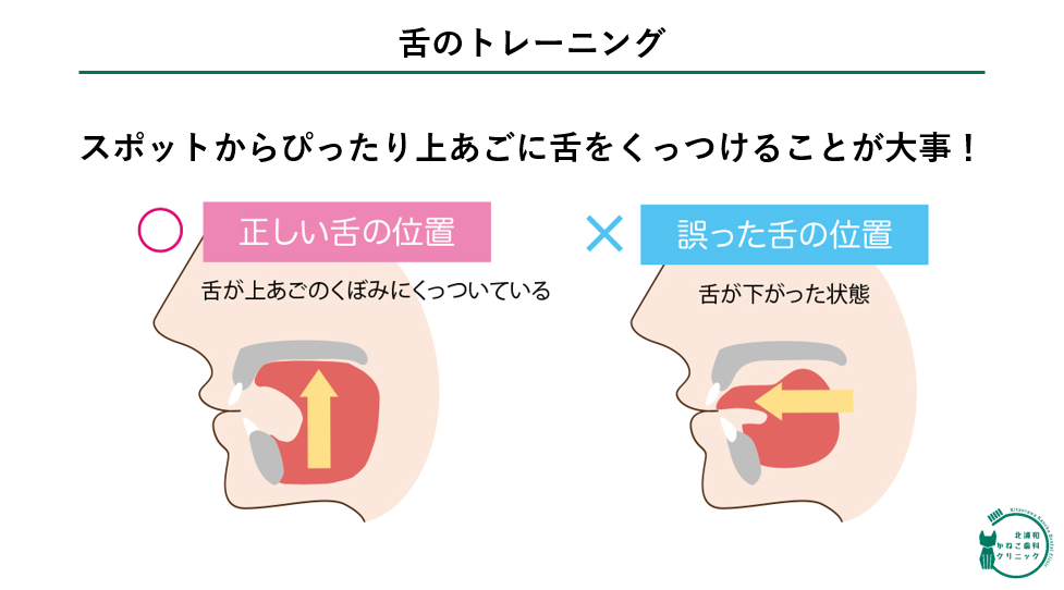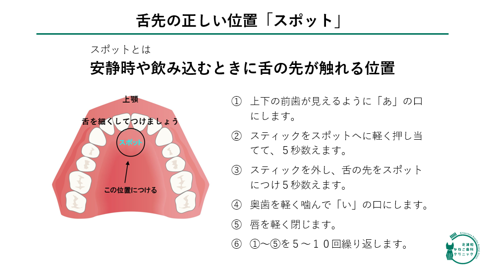 MFTのトレーニングはたくさんありますが、基本となる舌の位置「スポット」を意識するだけでも効果があります。