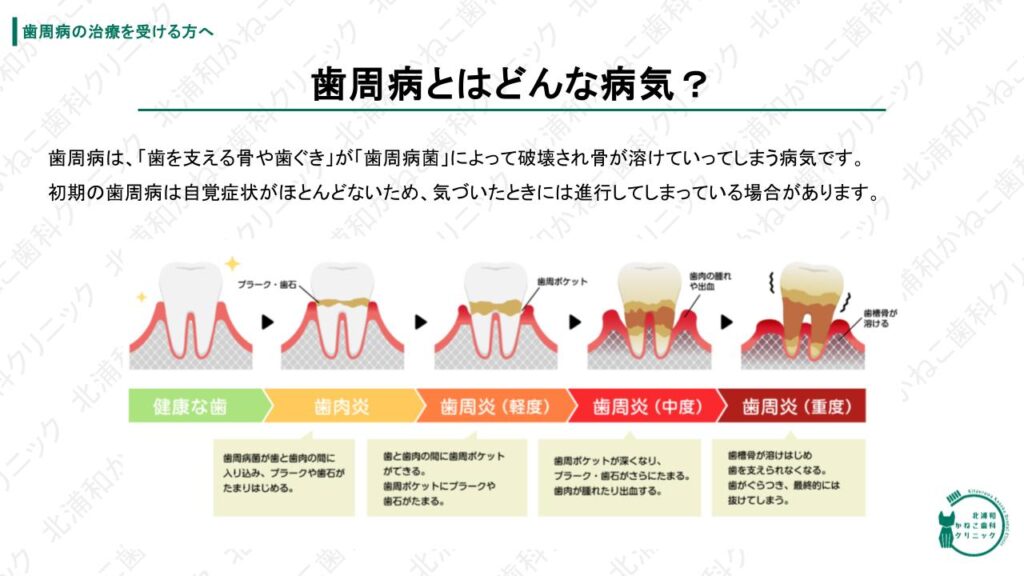 歯周病は、歯を支える骨や歯ぐきが歯周病菌によって破壊され骨が溶けていってしまう病気です。